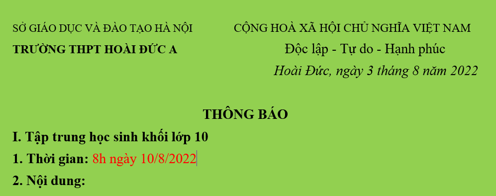 Hoài Đức, ngày 3 tháng 8 năm 2022