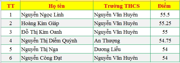 Trong đó 6 học sinh có kết quả cao nhất: