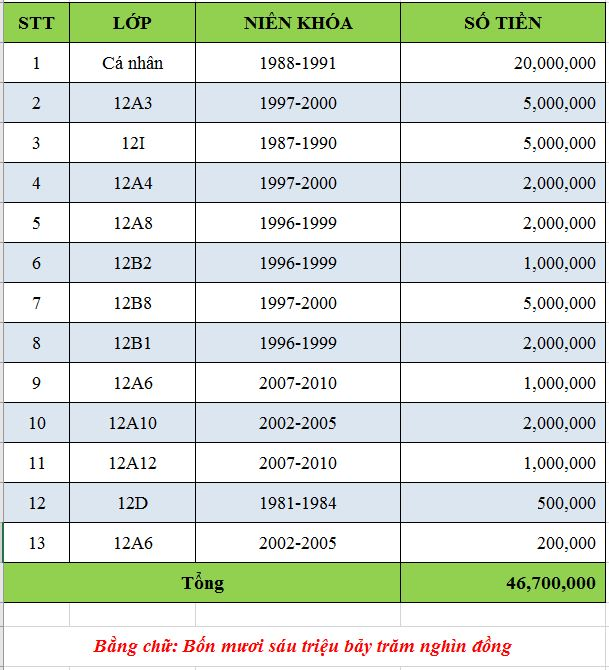 Danh sách tập thể, cá nhân cựu học sinh ủng hộ quỹ khuyến học của nhà trường năm học 2019 - 2020