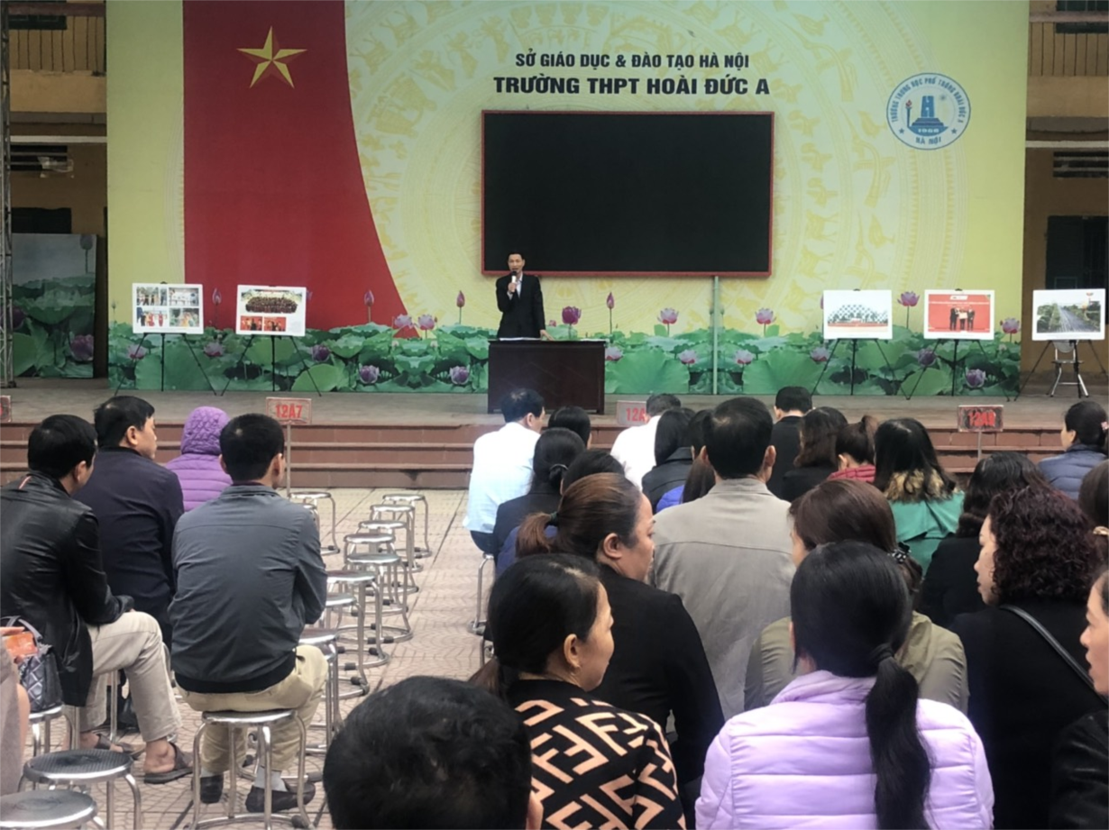Hôm nay ngày 5/1/2020 trường THPT Hoài Đức A long trọng tổ chức họp phụ huynh cuối học kì l. Cuộc họp phụ huynh gồm có hai phần. Phần thứ nhất toàn thể phụ huynh và học sinh họp tại sân trường . Phần thứ hai là họp trên lớp. Trong phần đầu toàn thể phụ huynh và học sinh đã được nghe giáo dục kĩ năng sống định hướng nghề nghiệp. Những kiến thức bổ ích về định hướng nghề nghiệp đã thu hút và tạo nên không khí hào hứng của cả Trường. Tiếp đó là phần tổng kết của thầy Nguyễn Bá Tài - Phó Hiệu trưởng nhà trường về kết quả học tập và rèn luyện trong kì học vừa qua. Phần định hướng nhiệm vụ học kì ll của thầy hiệu trưởng đã kết thúc chương trình họp chung. Trong phần họp riêng tại từng lớp, các lớp đã tiến hành thảo luận góp ý cho hoạt động của lớp, của trường.