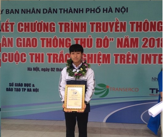 Hình minh họa: Bạn Hoàng Tuấn An học sinh lớp 11A9 xuất sắc đạt giải Nhất cuộc thi "Vì an toàn giao thông Thủ đô" năm 2018