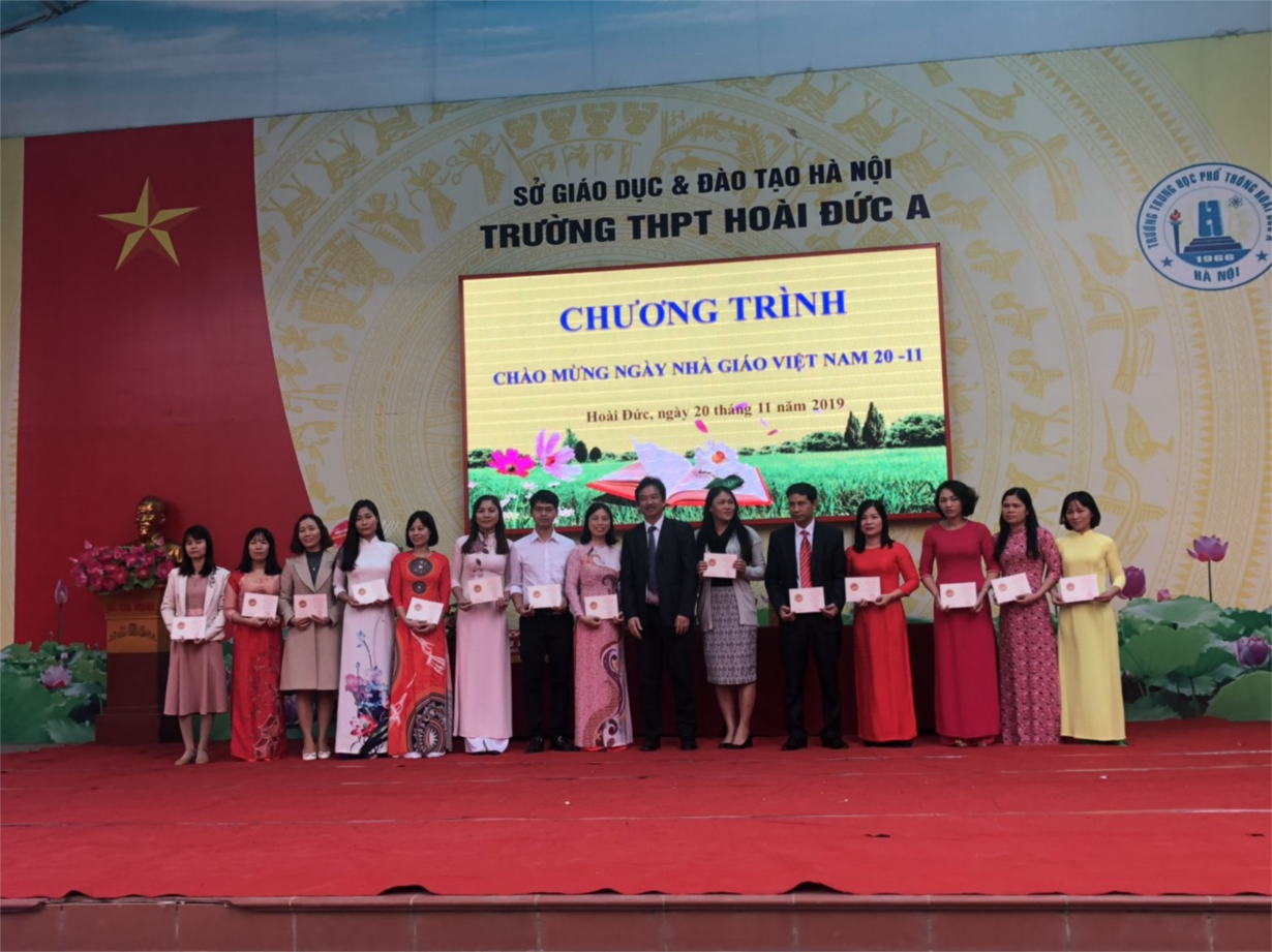 Hòa trong không khí cả nước chào mừng 37 năm ngày Nhà giáo Việt Nam (20/11/1982 – 20/11/2019). Sáng ngày 20/11/2019, Trường THPT Hoài Đức A long trọng tổ chức Chương trình hoạt động chào mừng ngày nhà giáo Việt Nam. Chương trình có sự tham dự của các thầy cô trong Ban giám hiệu nhà trường, đại diện hội cha mẹ học sinh, toàn thể cán bộ giáo viên, nhân viên, học sinh toàn trường. Đặc biệt có sự tham dự của quý thầy cô trong hội Cựu giáo chức của trường.