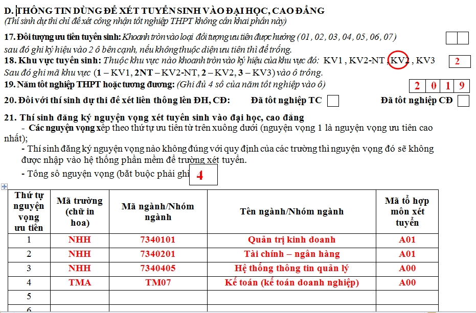 Nội dung: Hướng dẫn học sinh điền vào phiếu đăng kí dự thi THPT quốc gia và xét tuyển Đại học, Cao đẳng, Trung cấp năm 2019 đầy đủ, chính xác.