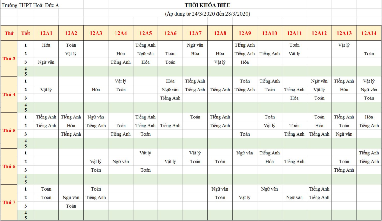 - Thời gian giải lao giữa các tiết học: 5 phút