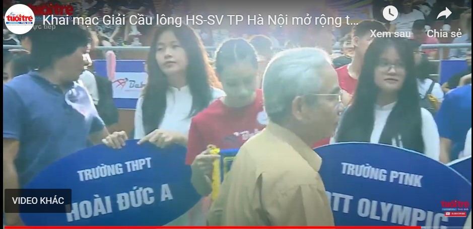 Sáng nay (29/9/2023), Lễ khai mạc Giải Cầu lông học sinh - sinh viên TP Hà Nội mở rộng tranh cúp báo Tuổi trẻ Thủ đô lần thứ X năm 2023 diễn ra tại Trung tâm Văn hóa - Thể thao quận Long Biên (Lô TH 05 khu đô thị mới Việt Hưng, Long Biên, Hà Nội). Giải thu hút gần 1.200 vận động viên là HS-SV các trường đại học, học viện, cao đẳng, trung cấp chuyên nghiệp, dạy nghề, THPT trên địa bàn Thủ đô và các tỉnh thành xung quanh tham gia.