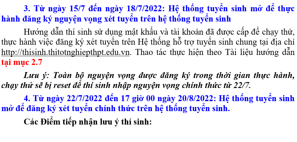 3. Từ ngày 15/7 đến ngày 18/7/2022: Hệ thống tuyển sinh mở để thực hành đăng ký nguyện vọng xét tuyển trên hệ thống tuyển sinh