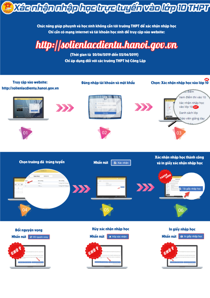 - Học sinh trúng tuyển nguyện vọng 1 thì không được đăng kí nhập học nguyện vọng 2.