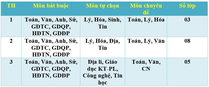 trường đã xây dựng 03 tổ hợp các môn học để học sinh đăng ký lựa chọn. Mỗi học